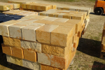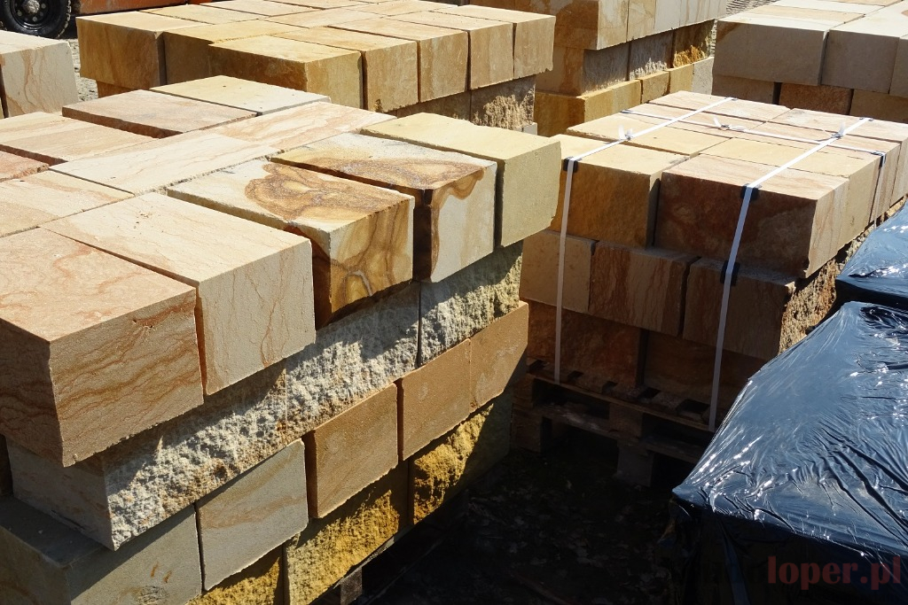 Cena 40 PLN dotyczy jednej sztuki kamienia murowego o wymiarach 20x20x40 cm, pakowanego po 36 sztuk na palecie. Jedna paleta waży około 1 tony i obejmuje powierzchnię około 2,9 m².